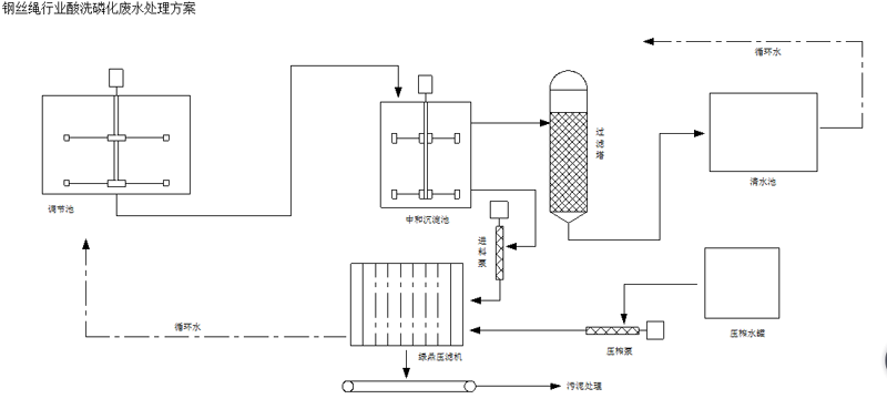 Pickling and phosphating waste water processing scheme in steel wire rope industry